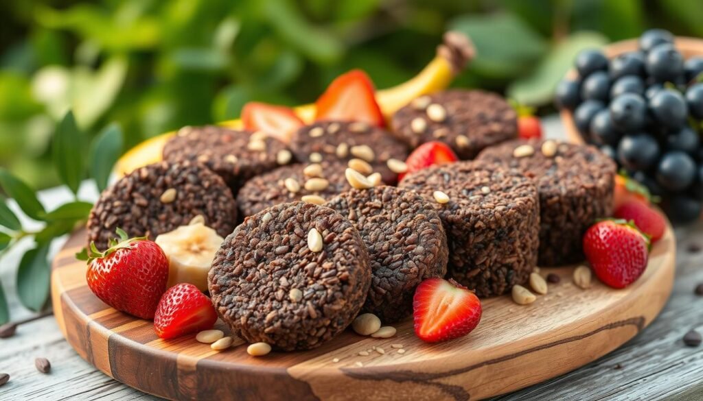 Chocolate rice cake clusters are easy and satisfying, with no cooking needed. They come in many shapes and flavors, appealing to all. You can make a batch to last for days, keeping your energy snacks ready.