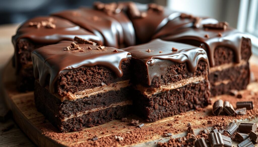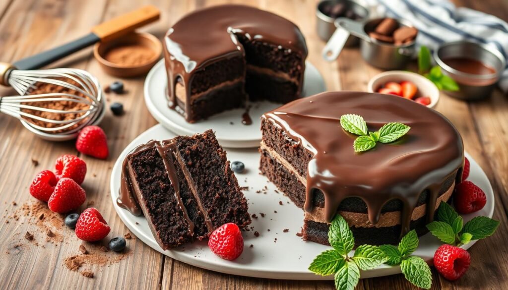 Finding the best chocolate cake features means mixing the right ingredients and methods. This mix gives us a rich flavor and a pleasing texture. A top-notch chocolate cake is moist and full of chocolate yet not too sweet.